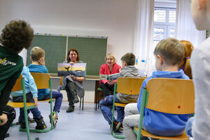 Kindern die Welt von Büchern näher bringen, das will die SPD-Bundestagsabgeordnete Katja Mast gemeinsam mit der Bürgermeisterin von Niefer-Öschelbronn, Birgit Förster, am Vorlesetag an der Grundschule Öschelbronn.